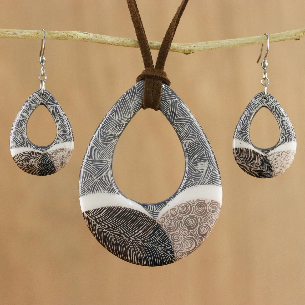 Handgemachtes Set Aus Keramik Halskette Und Ohrringe Im Stil Der Singenden Hugel Singende Hugel Novica